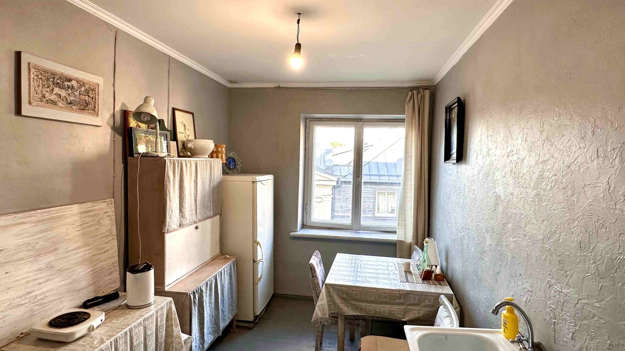 Квартира расположена на 3-м этаже довоенного кирпичного дома. Общая площадь – 32,8 м².
